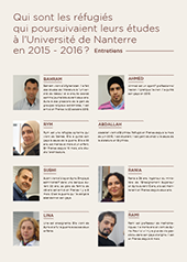 - Exposition - Témoignages d' étudiant•e•s réfugié•e•s accueilli•e•s à l’Université en 2015 / 2016À l’occasion de la Semaine d'éducation et d'actions contre le racisme et l'antisémitisme, le département des Lettres de la BU a mené des entretiens avec 8 étudiant•e•s réfugié•e•s originaires d'Afghanistan, d'Irak, d'Erythrée ou, pour la plupart, de Syrie. Lire la suite